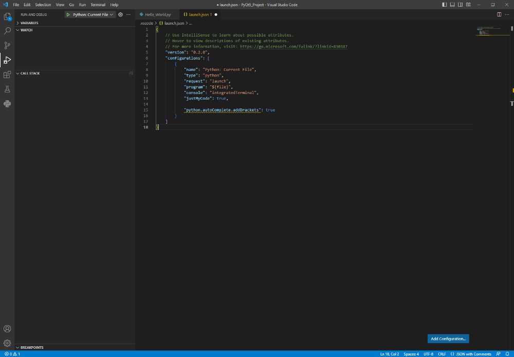먼저 VS Code를 열어 줍니다. 왼쪽의 Run And Debug를 항목을 클릭해 줍니다. 그러면 Run and Debug Button 아래 Create a launch.json file이라는 부분이 보이는데요. 여기를 클릭하면 생성할 수가 있습니다.