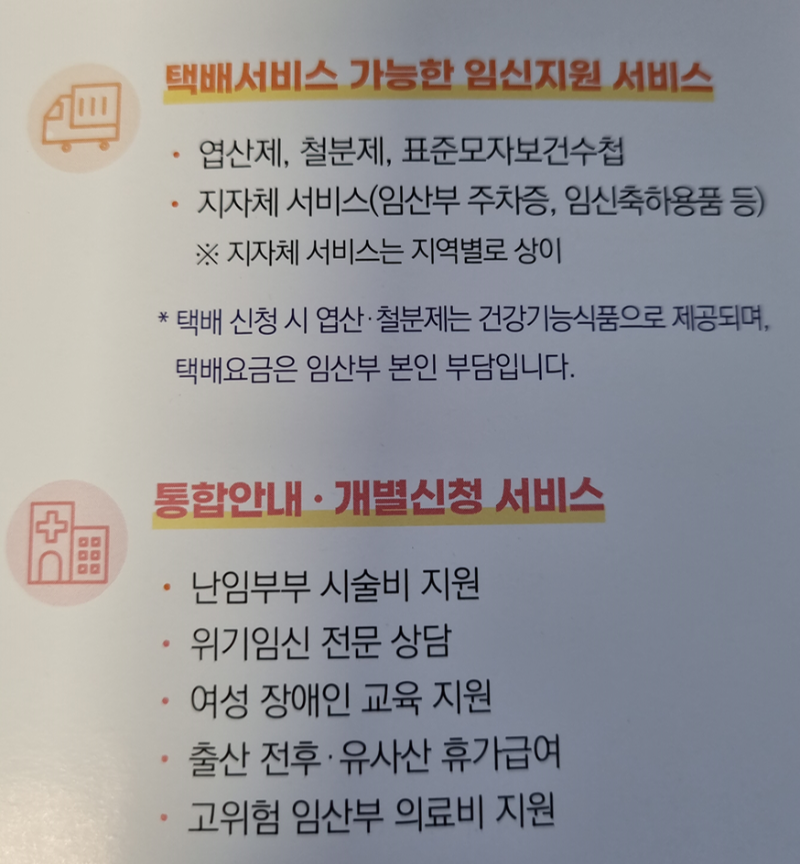임신 후 받을 수 있는 각정 임신 지원 서비스라고 생각하시면 돼요.