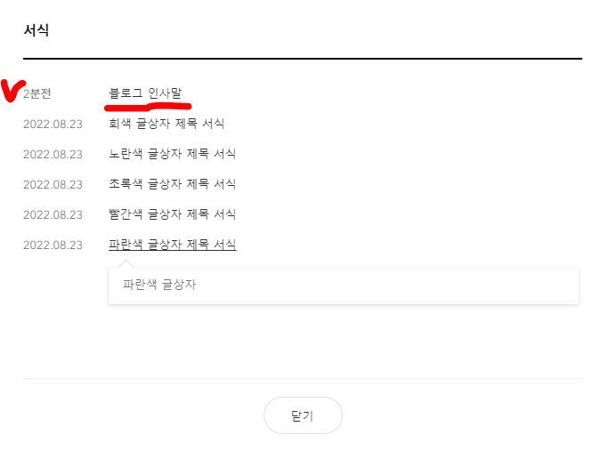 아까 만든 서식인 "블로그 인사말"을 클릭해 줍니다.