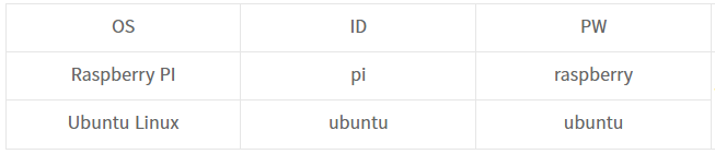 Raspberry PI OS를 설치한 관계로 ID는 pi, Password는 raspberry를 입력했습니다.