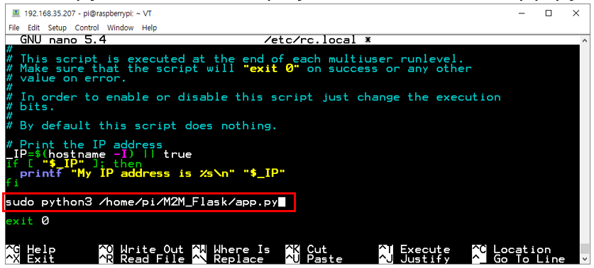 Python 파일 경로는 아까와 동일하니까 /home/pi/your_Flask_folder/app.py으로 써주면 됩니다.